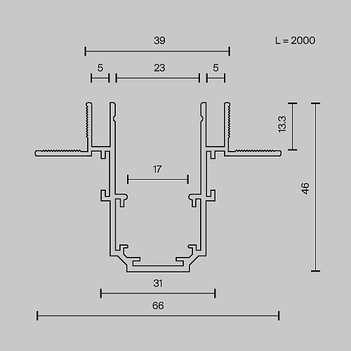 Характеристики Шинопровод магнитный встраиваемый под гкл 12,5 мм с каналом под светодиодную ленту Technical TRX034LS-222B