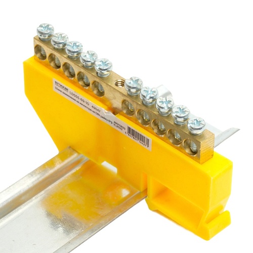 Отзывы о Шина"PE" на изоляторе STEKKER 6*9 на DIN-рейку 10 выводов, желтый, LD555-69-10