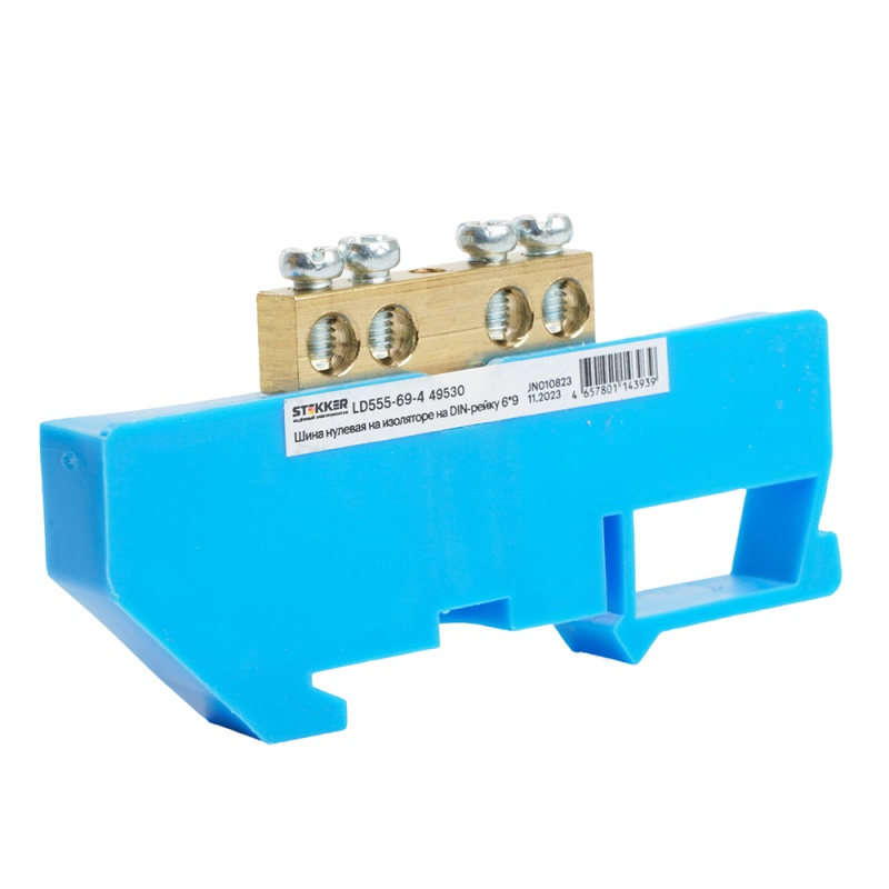 Шина"N" на изоляторе STEKKER 6*9 на DIN-рейку 4 вывода, синий, LD555-69-4 49530