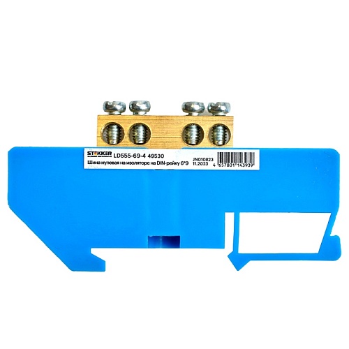 Шина"N" на изоляторе STEKKER 6*9 на DIN-рейку 4 вывода, синий, LD555-69-4
