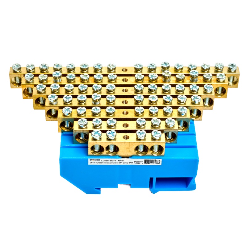 Характеристики Шина"N" на изоляторе STEKKER 8*12 на DIN-рейку 12 выводов, синий, LD555-812-12