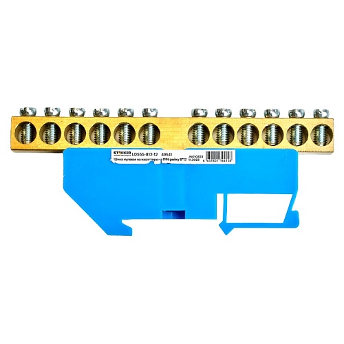 Шина"N" на изоляторе STEKKER 8*12 на DIN-рейку 12 выводов, синий, LD555-812-12 49541
