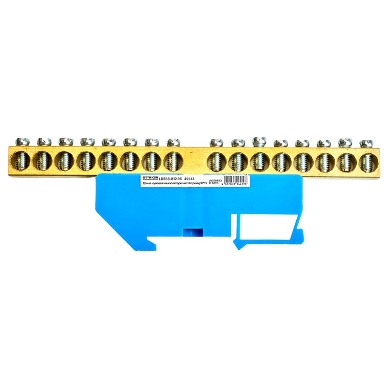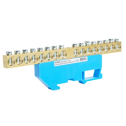Шина"N" на изоляторе STEKKER 8*12 на DIN-рейку 16 выводов, синий, LD555-812-16 49543