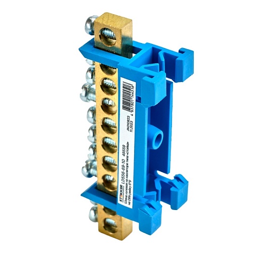 Шина "N" на изоляторе STEKKER 6*9 тип "стойка" на DIN-рейку 10 выводов, синий, LD556-69-10
