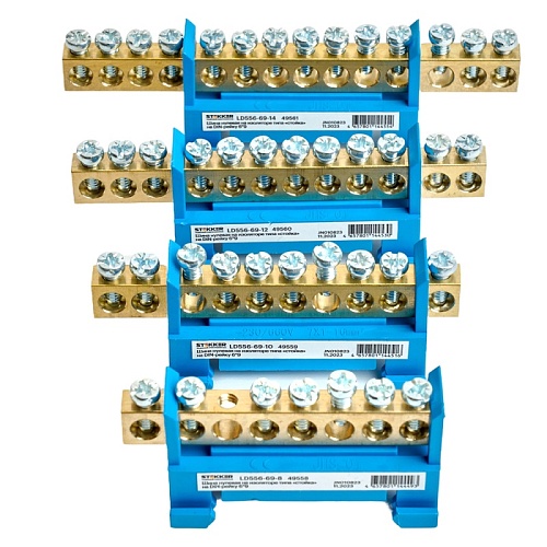 Характеристики Шина "N" на изоляторе STEKKER 6*9 тип "стойка" на DIN-рейку 10 выводов, синий, LD556-69-10