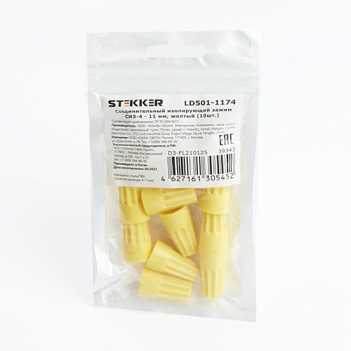 Характеристики Соединительный изолирующий зажим СИЗ-4 - 11 мм2, желтый, LD501-1174 (DIY упаковка 10 шт)