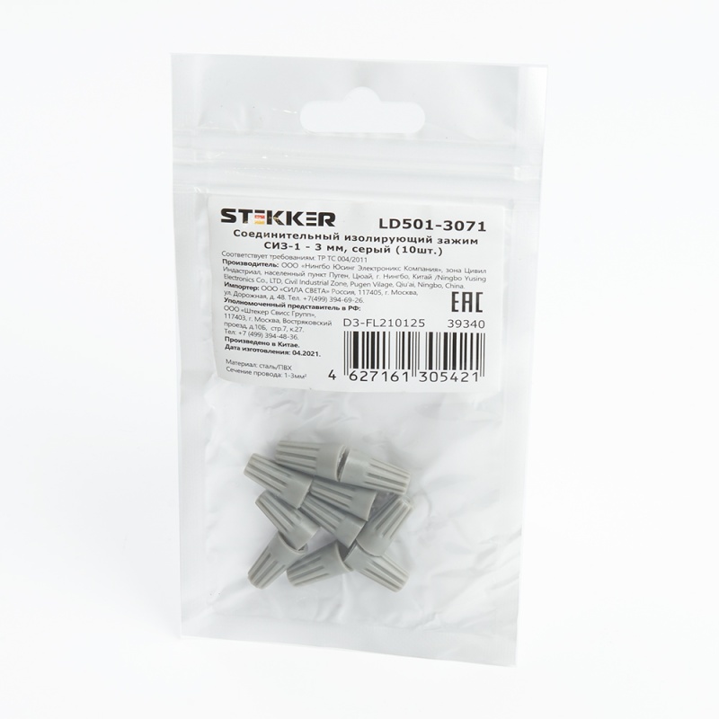 Соединительный изолирующий зажим СИЗ-1 - 3 мм2, серый, LD501-3071 (DIY упаковка 10 шт)