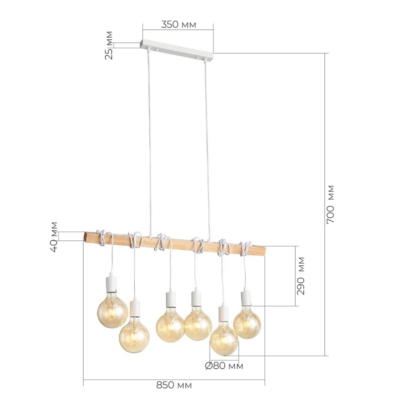 Характеристики Светильник подвесной Белый, Светлое дерево E27 6*60W SL1142.503.06