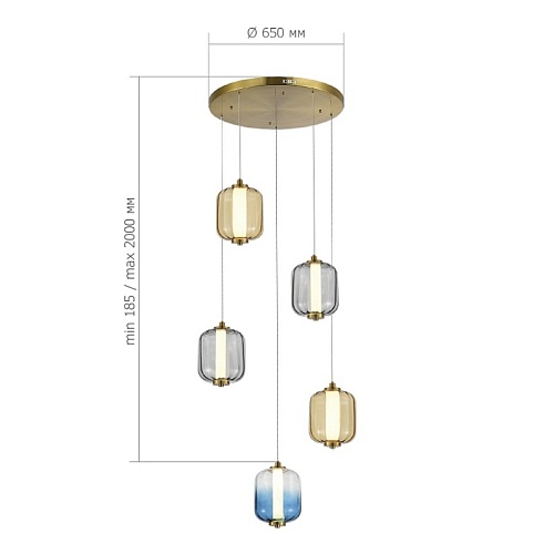 Характеристики Светильник подвесной ST-Luce Латунь/Янтарный,Дымчатый,Голубой LED 5*10W 3000K SL1193.303.05