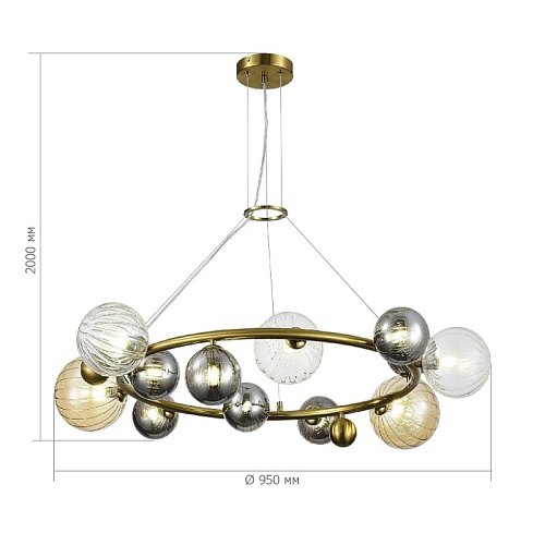Характеристики Светильник подвесной ST-Luce Латунь/Янтарный,Дымчатый,Прозрачный G9 12*5W 4000K SL1515.303.12