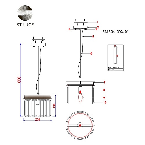 Характеристики Светильник подвесной ST-Luce шампань/прозрачный E14 1*40W SL1624.203.01