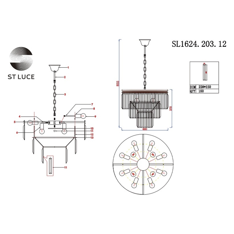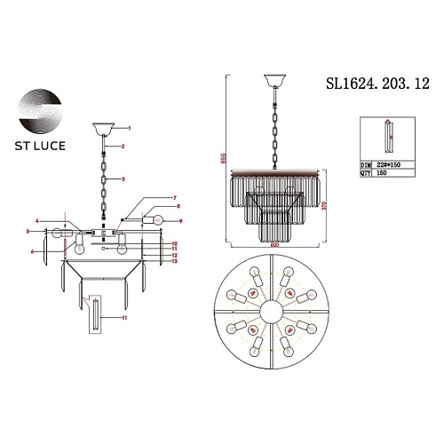 Характеристики Люстра подвесная ST-Luce шампань/прозрачный E14 12*40W SL1624.203.12
