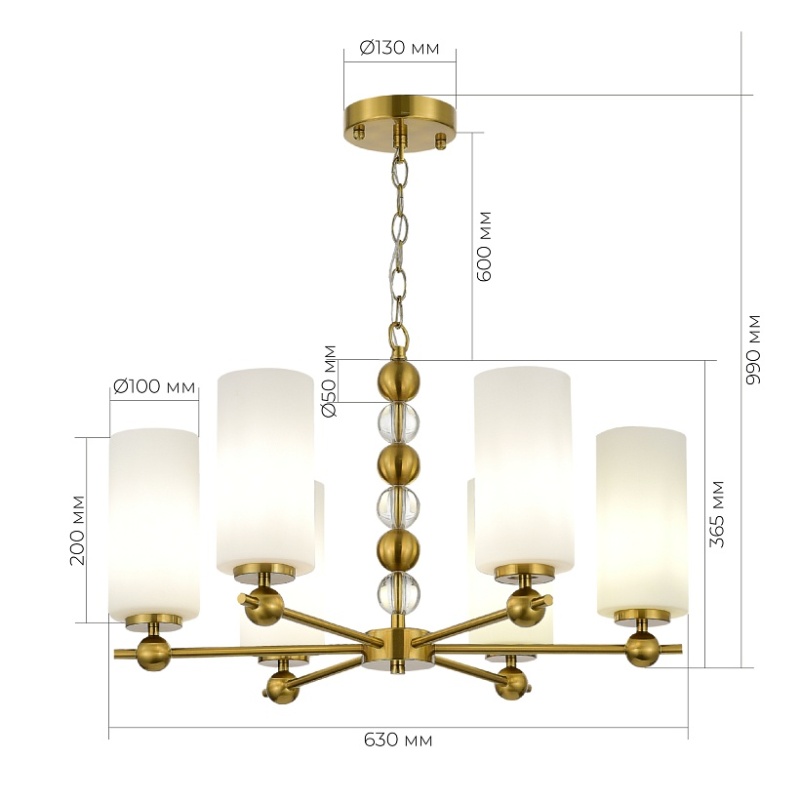 Характеристики Светильник подвесной ST-Luce латунь/белый E27 6*40W SL2003.303.06