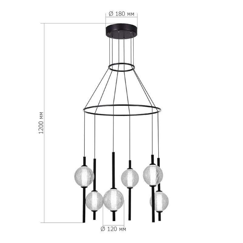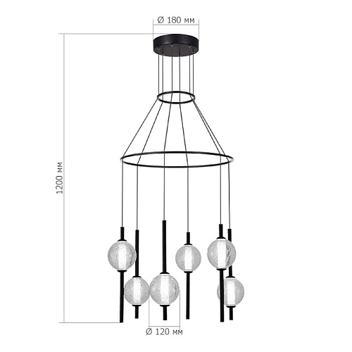 Характеристики Светильник подвесной ST-Luce Черный/Прозрачное кракелированное стекло LED 6*8,5W 3000K SL6120.403.06