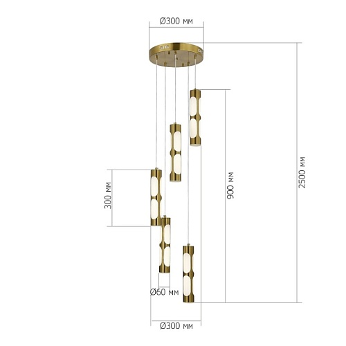 Характеристики SL6237.303.05 Светильник подвесной ST-Luce латунь/белый LED 5*6W 4000K DALLAMOS