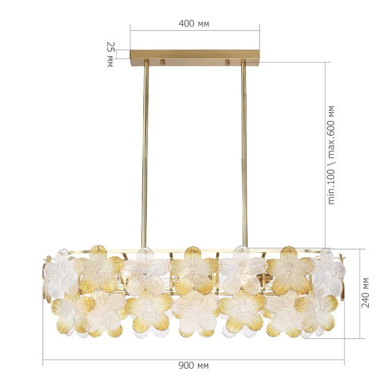 Характеристики Светильник подвесной ST-Luce золотистый/Прозрачный, январный E14 8*60W SL6240.203.08