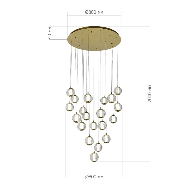 Характеристики SL6520.303.20 Светильник подвесной ST-Luce латунь/прозрачный с пузырьками воздуха LED 1*100W 4000K HELMI