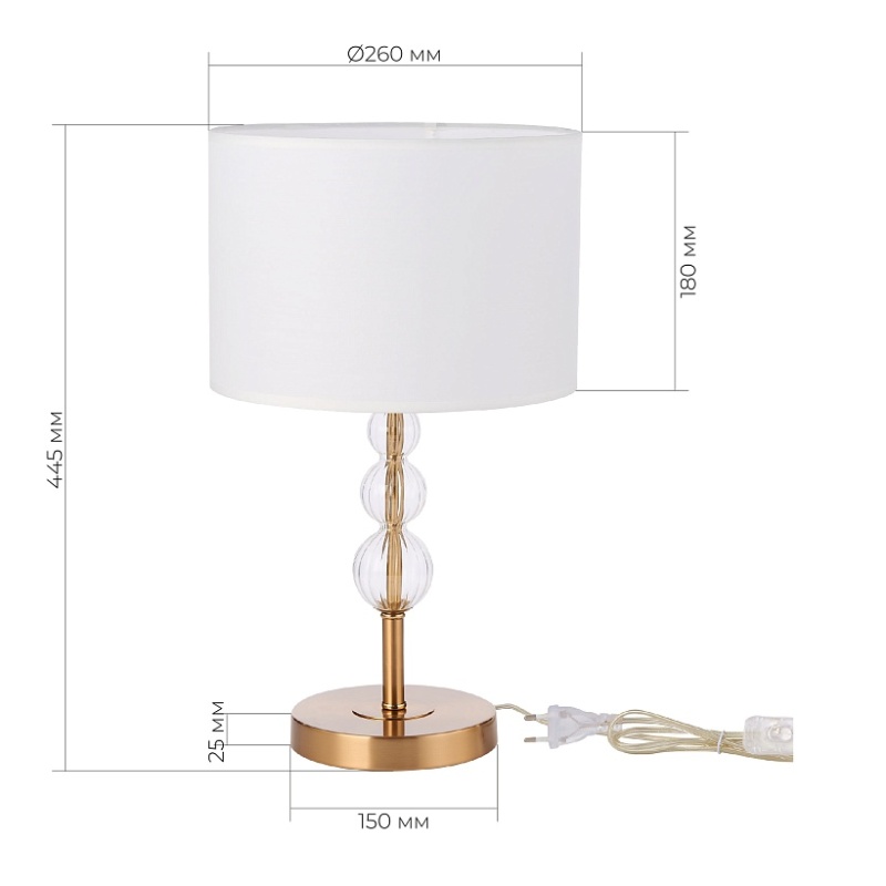 Характеристики Прикроватная лампа Латунь, Прозрачный/Белый E14 1*40W SLE105714-01