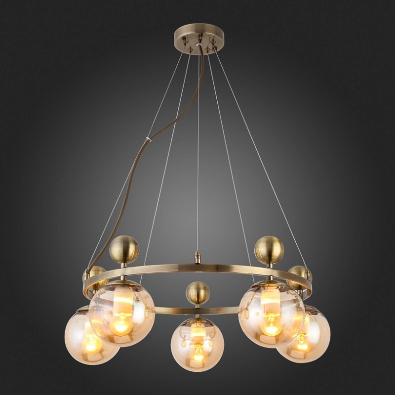 Светильник подвесной Бронзовый/Прозрачный, Янтарный E27 5*60W SLE106303-05