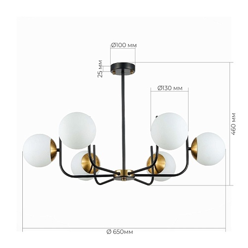 Характеристики Светильник потолочный Черный, Латунь/Белый E27 6*60W SLE1098-402-06