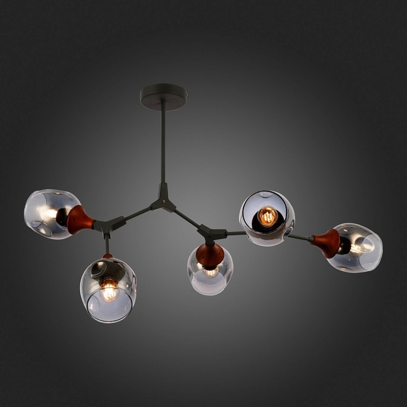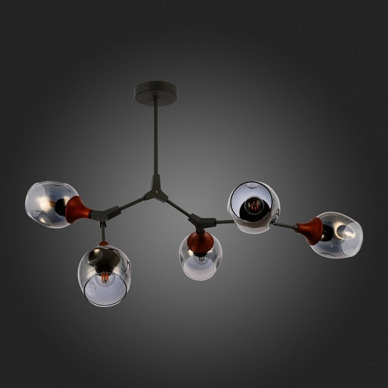 Светильник потолочный Серый, Темное дерево/Зеркальный E27 5*60W SLE113402-05