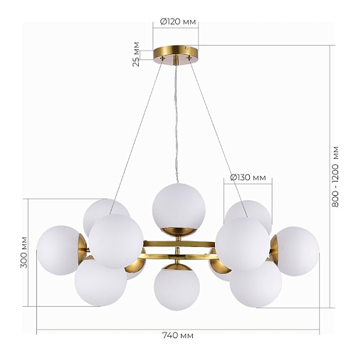 Характеристики Светильник подвесной Золотистый/Белый E27 12*60W SLE1191-203-12