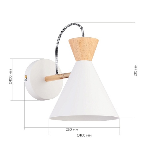 Характеристики Светильник настенный Белый, Золотистый/Белый, Светлое дерево E14 1*40W SLE125101-01