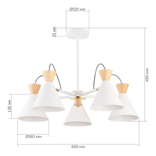 Характеристики Светильник потолочный Белый, Золотистый/Белый, Светлое дерево E14 5*40W SLE125102-05