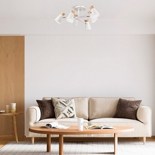 Светильник потолочный Белый, Золотистый/Белый, Дерево E27 6*60W SLE1252-502-06