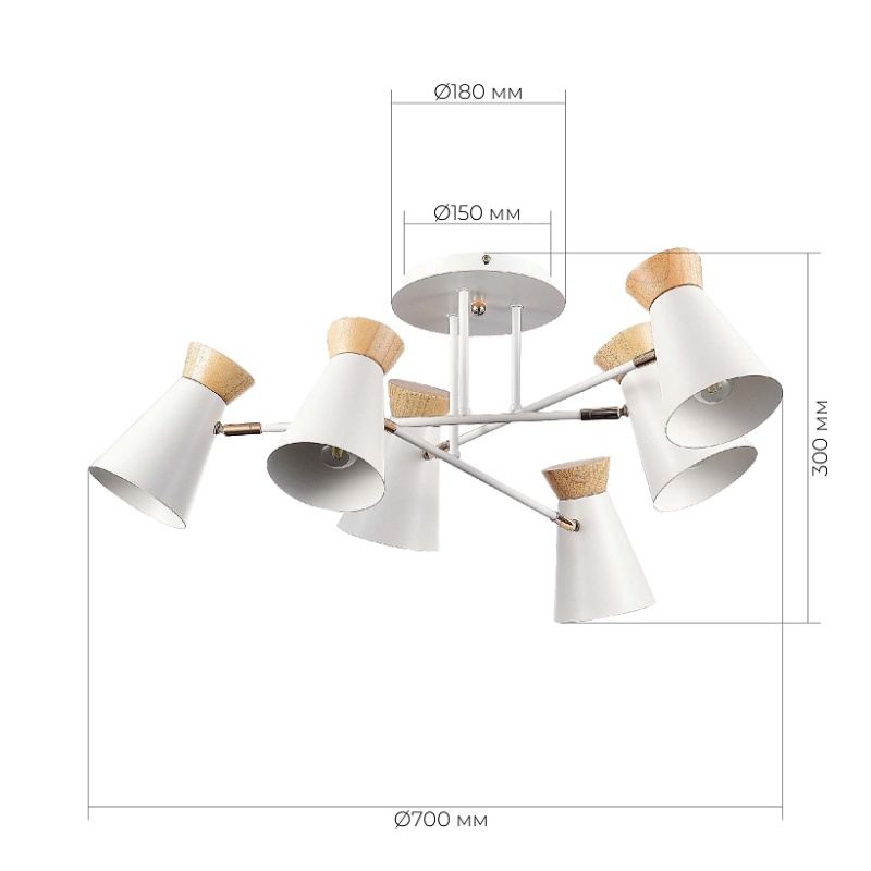 Характеристики Светильник потолочный Белый, Золотистый/Белый, Дерево E27 6*60W SLE1252-502-06