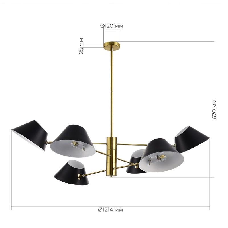 Светильник подвесной Латунь/Черный, Белый E14 6*60W SLE1253-343-06