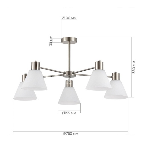Характеристики Светильник потолочный Никель/Белый E27 5*60W SLE1561-103-05