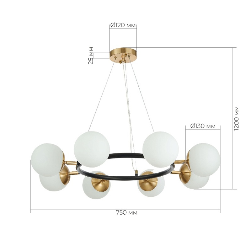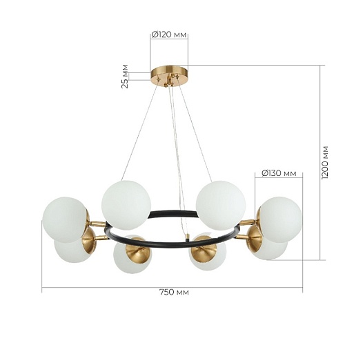 Светильник подвесной Черный, Латунь/Белый E27 8*60W SLE220403-08