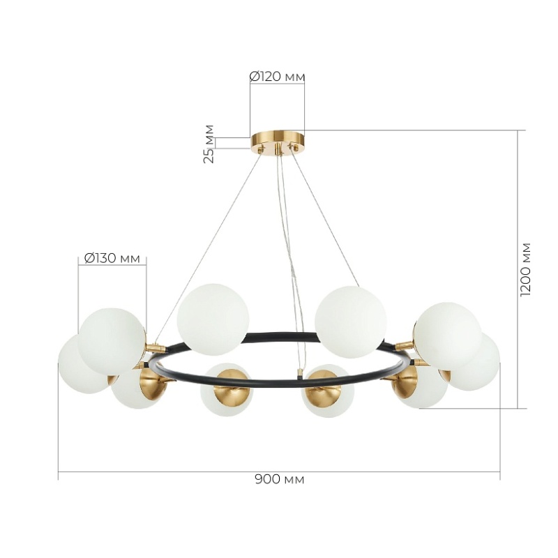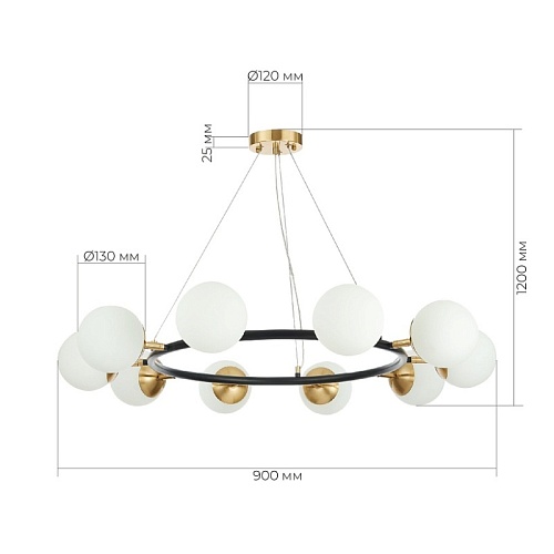 Светильник подвесной Черный, Латунь/Белый E27 8*60W SLE220403-08