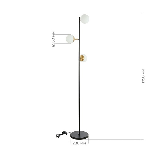 Характеристики Светильник напольный Черный, Латунь/Белый E27 3*60W SLE220405-03