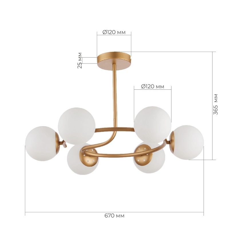 Характеристики Светильник потолочный Золотистый/Белый E14 6*40W SLE220602-06