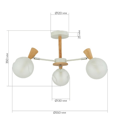 Светильник потолочный Белый, Светлое дерево/Белый E14 3*40W SLE220702-03