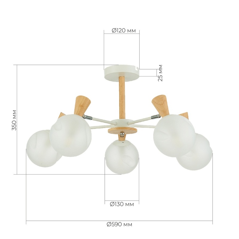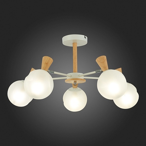 Светильник потолочный Белый, Светлое дерево/Белый E14 5*40W SLE220702-05