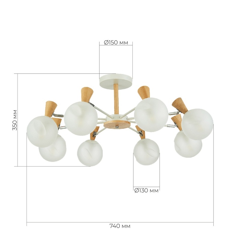 Характеристики Светильник потолочный Белый, Светлое дерево/Белый E14 8*40W SLE220702-08