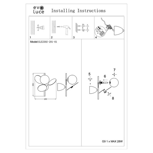 Характеристики Светильник настенный Золотистый/Разноцветный G9 LED 1*5W SLE2502-201-01
