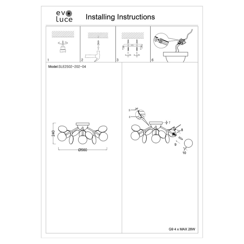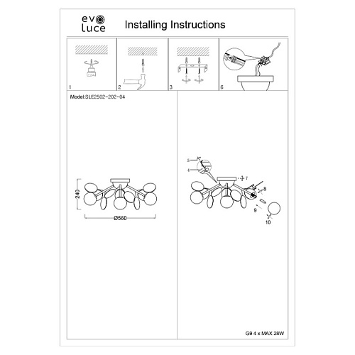 Характеристики Светильник потолочный Золотистый/Разноцветный G9 LED 4*5W SLE2502-202-04