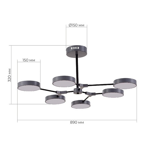 Светильник потолочный Серый, Черный/Серый LED 6*10W SLE6003-702-06