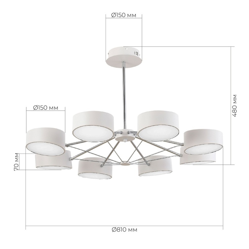 Светильник потолочный Белый, Хром/Белый LED 8*10W SLE6005-502-08