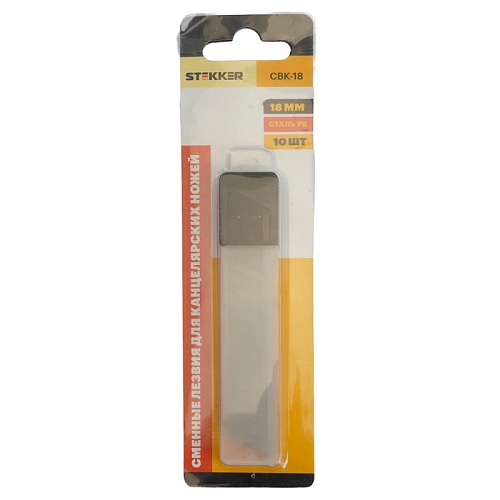 Характеристики Сменные лезвия для канцелярских ножей, блистер, 18 мм, 10 шт, STEKKER CBK-18