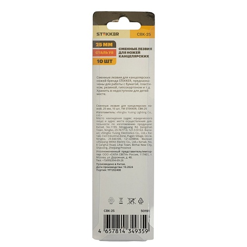 Отзывы о Сменные лезвия для канцелярских ножей, блистер, 25 мм, 10 шт, STEKKER CBK-25