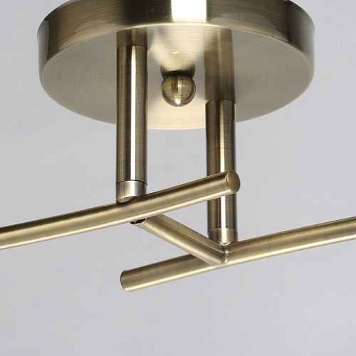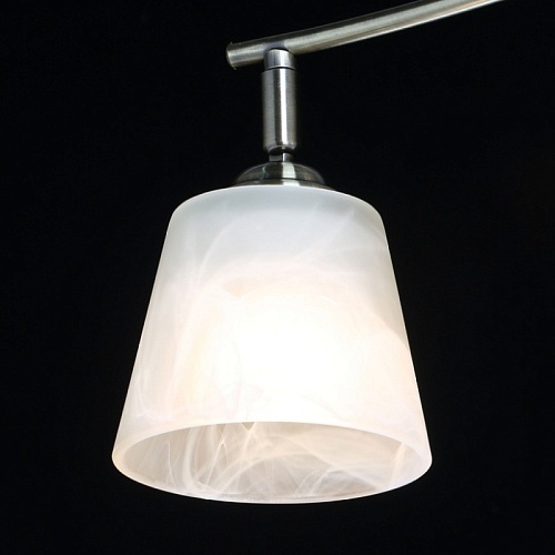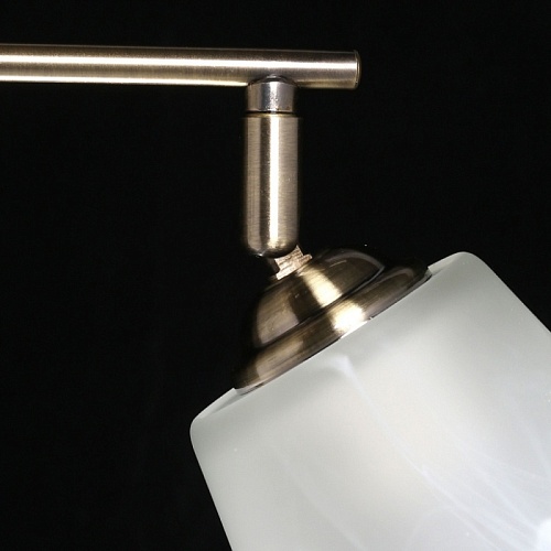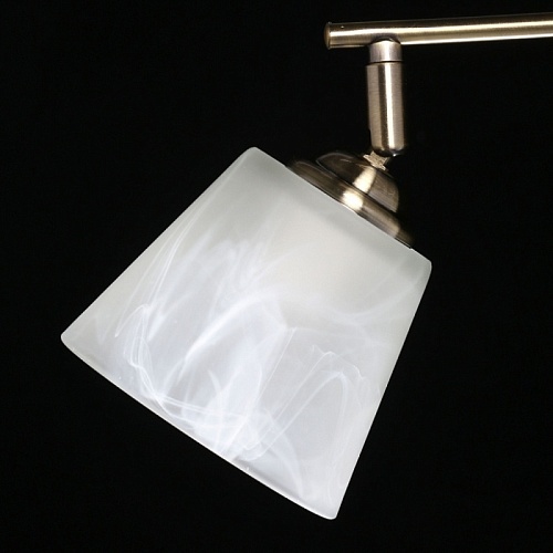 Основание светильника выполнено из металла и гальванизировано в цвет античной бронзы. Светильник декорирован плафонами, выполненными из алебастрового стекла.
