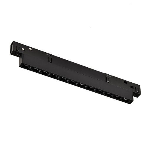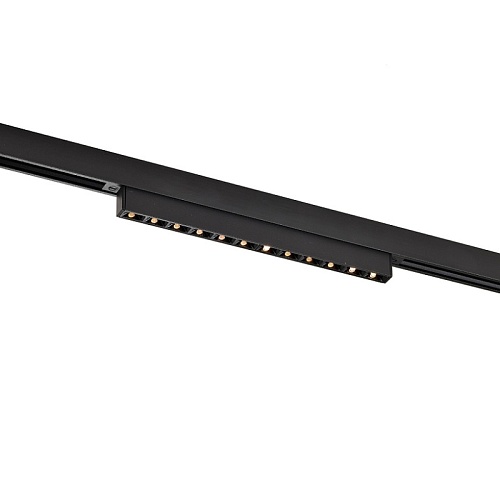 Трековый линейный светильник в черном цвете, с гнездовой структурой светодиодов, угол рассеивания света 30°.