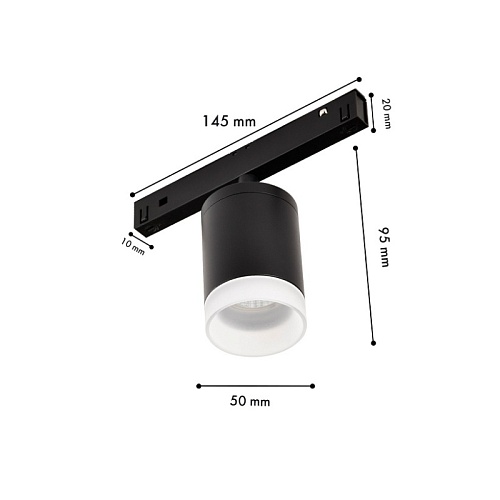 Цилиндрический светильник в черном цвете с акриловым рассеивателем, модуль LED.