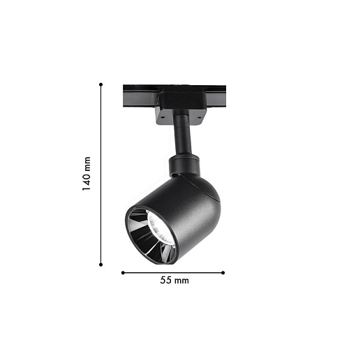 Трековый поворотный светильник в черном цвете, с модулем LED, 24° угол рассеивания.