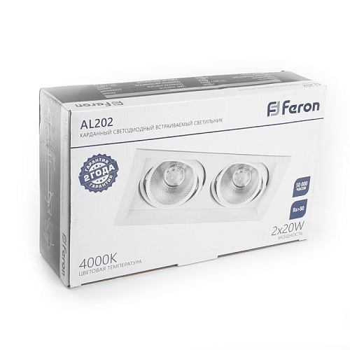 Характеристики Светодиодный светильник Feron AL202 карданный 2x20W 4000K 35 градусов ,белый